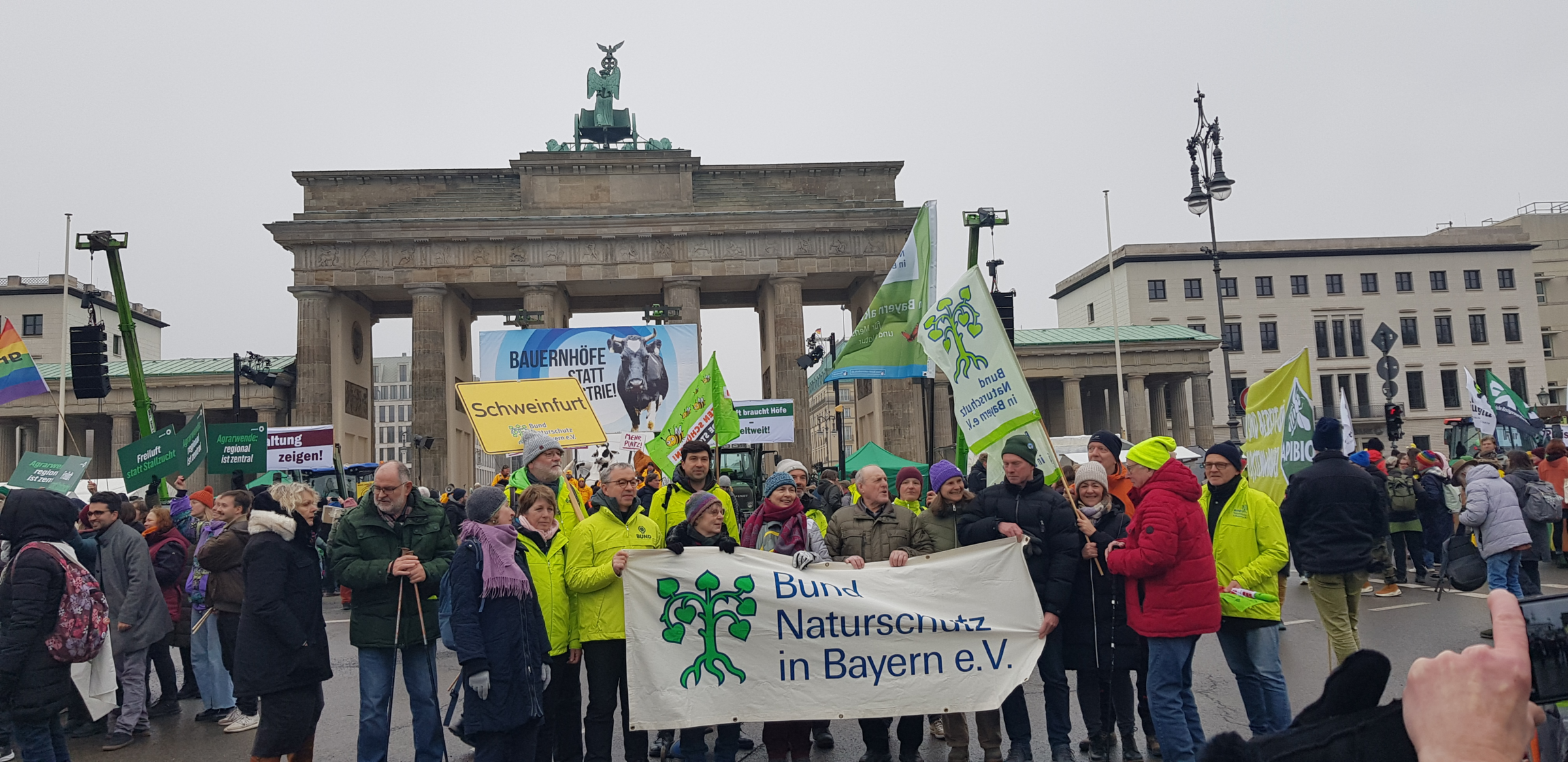 Die Auftaktkundgebung fand dieses Mal vor dem Brandenburger Tor statt und war auch Endziel des Demonstrationszuges durch die Innenstadt; vorbei am Bundeslandwirtschafts-Ministerium. Dort kam es auch zu einem Treffen zwischen dem BN-Ehrenvorsitzenden Prof. Dr. Hubert Weiger und dem Präsidenten des Bayer. Bauernverbandes, Günther Felßner.